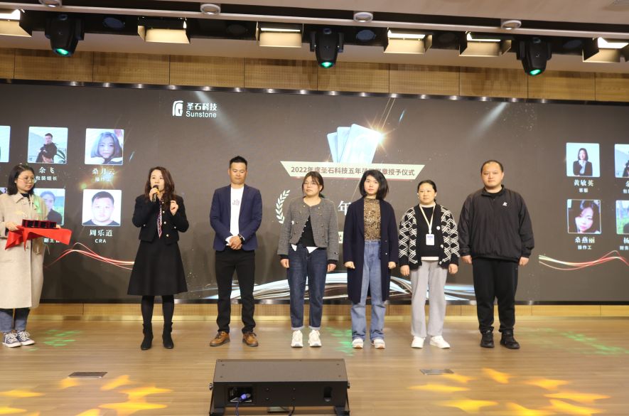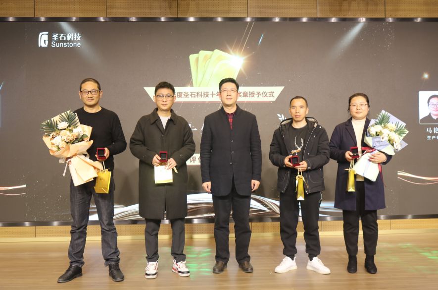 會(huì)中,總經(jīng)理石磊和副總經(jīng)理孫莎莎分別為與企業(yè)同行已滿十年及五年的老員工頒發(fā)了特別定制的金銀質(zhì)企業(yè)徽章。表彰他們一心扎根于圣石,為圣石奉獻(xiàn)了青春與年華,貢獻(xiàn)了智慧和力量。五年與十年的堅(jiān)守,不僅是他們對(duì)事業(yè)的熱愛(ài),更是他們對(duì)圣石的認(rèn)可!