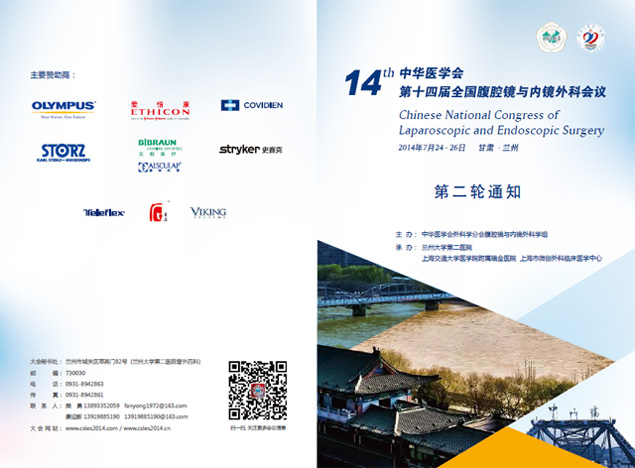 我公司將于2014年7月24日-7月26日作為主要贊助商之一參加在蘭州舉行的中華醫(yī)學(xué)會(huì)第14屆全國腹腔鏡與內(nèi)鏡外科會(huì)議,屆時(shí)我司將在會(huì)場設(shè)立特裝展臺(tái)。公司熱忱歡迎業(yè)內(nèi)同道到訪參觀并進(jìn)行技術(shù)交流。