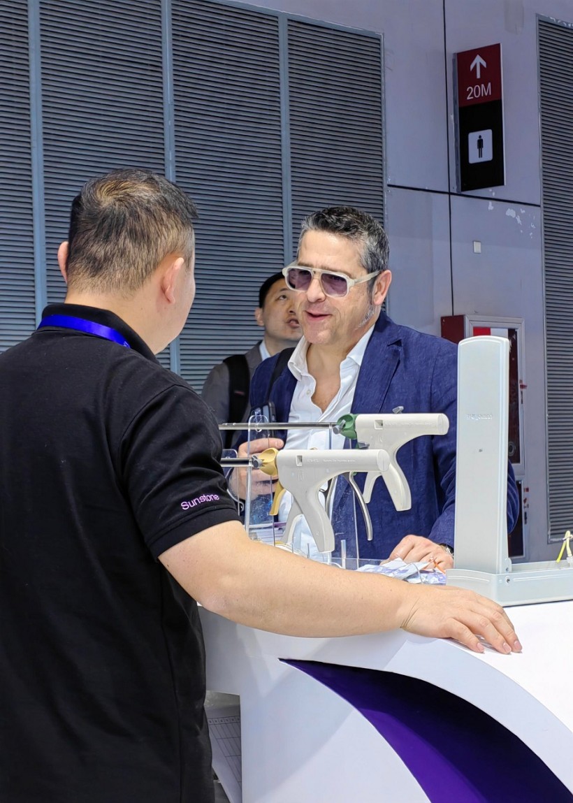 2025年4月8日,第91屆中國(guó)國(guó)際醫(yī)療器械(春季)博覽會(huì)(簡(jiǎn)稱“CMEF”)在國(guó)家會(huì)展中心(上海)啟幕,圣石科技在創(chuàng)新醫(yī)療器械研制的銳意進(jìn)取,成為展會(huì)的看點(diǎn)之一。作為管腔組織閉合及吻合方案的專業(yè)提供者,圣石展品吸引了大量國(guó)內(nèi)外客戶的專程體驗(yàn),展臺(tái)前人流不息,洽談氣氛熱烈。