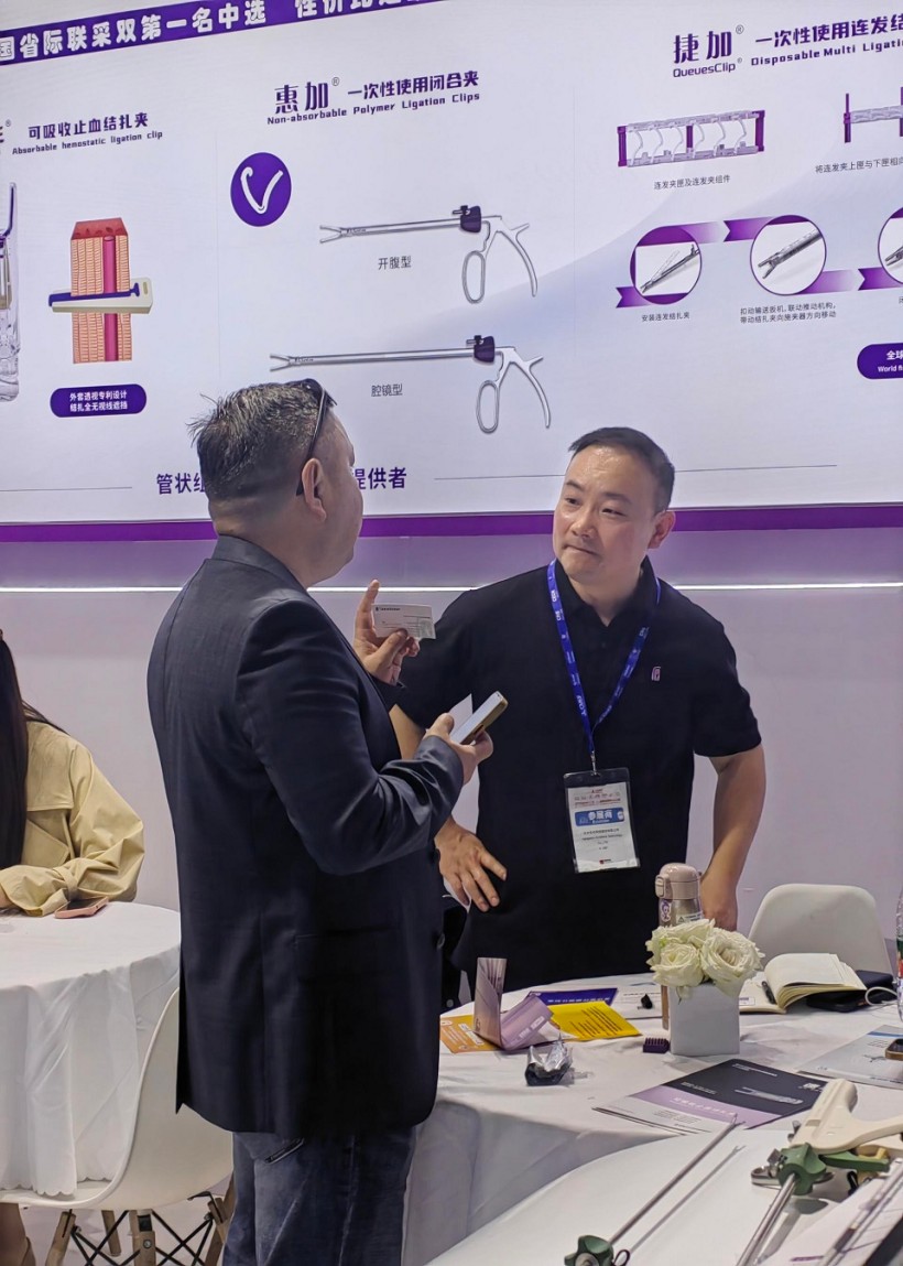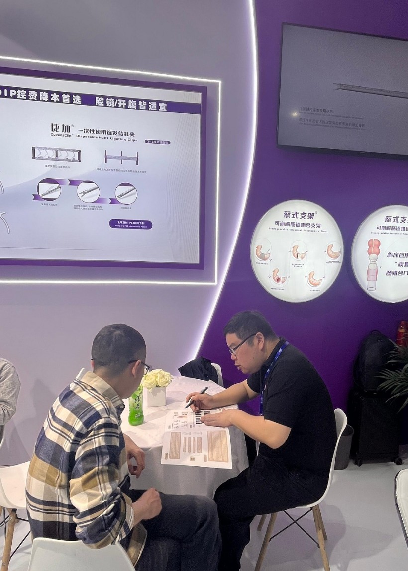 圣石同期展示的獨(dú)創(chuàng)產(chǎn)品又一次聚焦了眾人目光。全球首創(chuàng)捷加?一次性使用連發(fā)結(jié)扎夾及配套捷施?連發(fā)施夾鉗,其獨(dú)特的可重復(fù)使用連發(fā)鉗專利設(shè)計(jì),以及“2-6枚的連發(fā)夾靈活選裝”專利技術(shù)不僅降低耗材使用成本,更通過(guò)流暢的操控性適配腔鏡復(fù)雜場(chǎng)景需求。圣石與浙大邵逸夫醫(yī)院聯(lián)合研制,可應(yīng)用于腸道吻合與轉(zhuǎn)流的創(chuàng)新產(chǎn)品蔡式支架?“可崩解腸道吻合器”使此項(xiàng)全球創(chuàng)新術(shù)式配套產(chǎn)品具有吻合時(shí)間短、無(wú)永久殘留異物、不破壞吻合口粘膜下血管,并能預(yù)防吻合口漏、可避免人工肛門(mén)及二次手術(shù)、治療周期縮短、減少患者生理心理創(chuàng)傷等多項(xiàng)臨床優(yōu)勢(shì)。