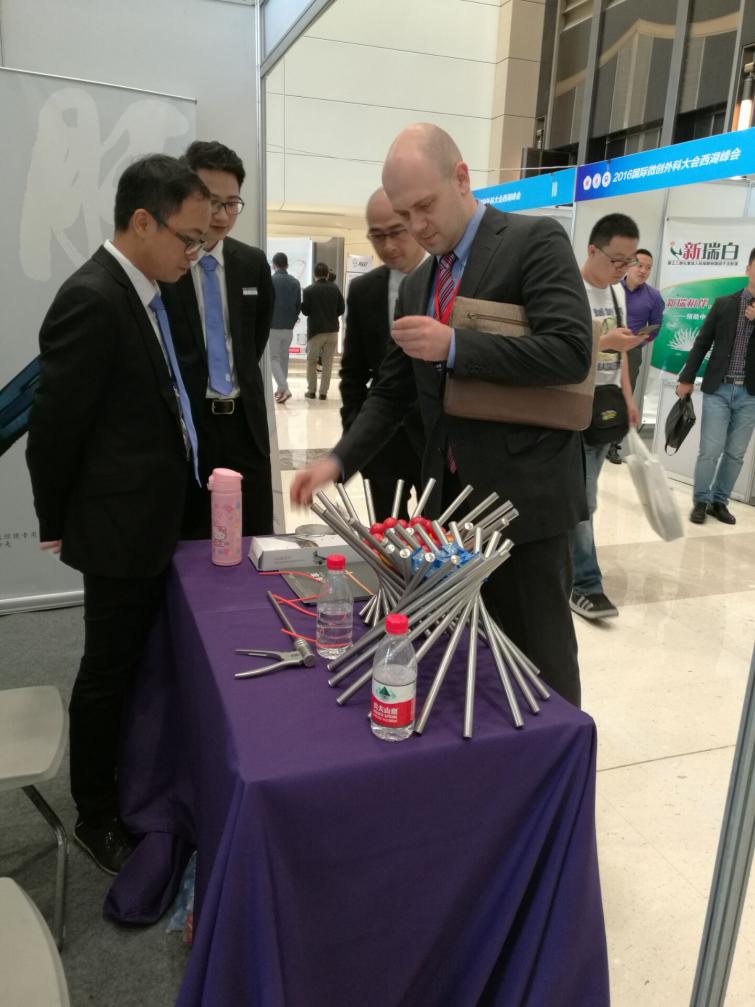 會議茶歇期間,我公司展位吸引了眾多專家醫(yī)師們的關(guān)注,其中有來自英國皇家英格蘭外科學(xué)院的專家代表前來了解我公司產(chǎn)品---速豐?可吸收止血結(jié)扎夾,現(xiàn)場我司工作人員欣然以嫻熟的英語為其做介紹與產(chǎn)品演示,我公司產(chǎn)品的特點及優(yōu)勢得到了英國皇家英格蘭外科學(xué)院專家的認可與肯定!