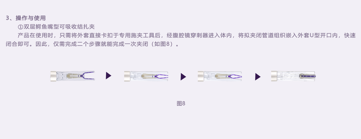 內(nèi)外層夾為雙色設(shè)計,涇渭分明。實際使用中內(nèi)外層夾配合夾閉管腔效果一目了然,避免錯誤判斷。